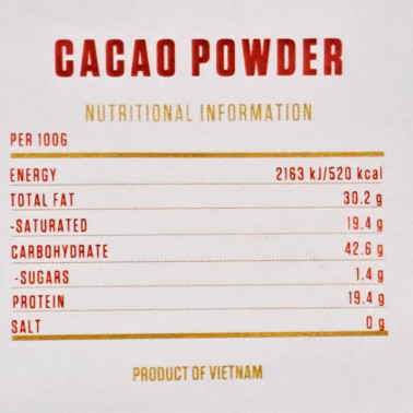 Cacao en polvo Vietnam 1kg, natural no alcalinizado
