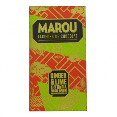 Pasta de cacao y manteca de cacao en un 68%, azúcar de caña, lima y genjibre deshidratado.