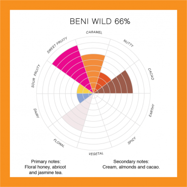 Chocolate negro 66% de la cuenca del Rio Beni, en la selva húmeda de Bolivia, cosechado de árboles salvajes, no cultivados.