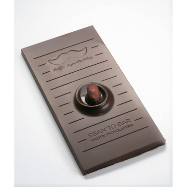 Una pequeña obra de arte es también el molde de la tableta que incluye un haba de cacao completa.