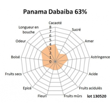 Las habas de este Dabaiba 63% dan lugar aun chocolate con notas de frutos secos y cacao, un clásico trinitario.