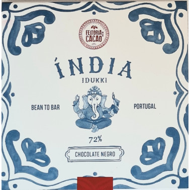 Este chocolate elaborado con cacao de Kerala, India portuguesa en el pasado, presenta notas afrutadas, que recuerdan a cítricos y frutos rojos, a fresa en ocasiones. En este caso se trabaja al 72%