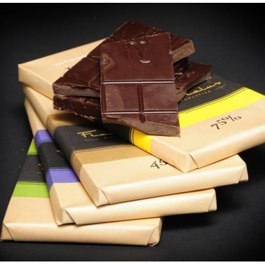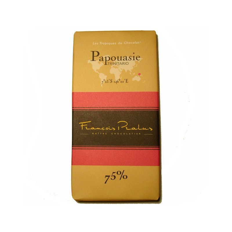Este es el modo de trabajo de Francois Pralus, su chocolate es calidad e imaginación. Todos sus chocolates de origen único tienen el mismo porcentaje de cacao, 75%, azúcar y manteca de cacao. Es precisamente ese origen diferente lo que confiere un sabor particular en cada tableta.
