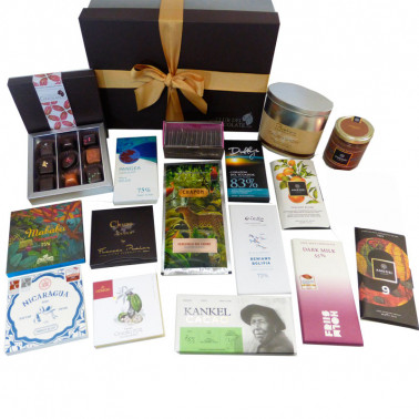 Cesta de Regalo Gourmet con los mejores chocolates en diferentes formatos
