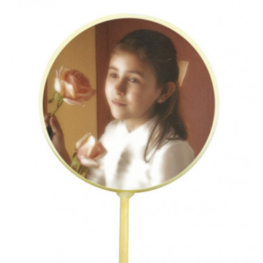 Se trata de una piruleta artesanal de chocolate sobre la que podemos imprimir cualquier fotografía o imagen que deseen.