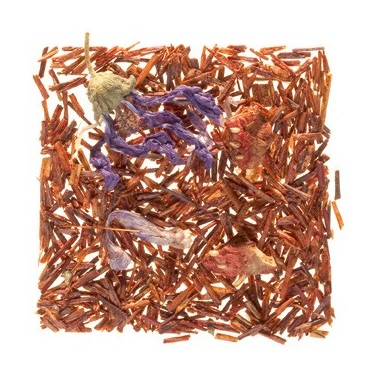 Aromático Rooibos de Sudáfrica aromatizado con fresa, grosella, frambuesa y pétalos de malva.
