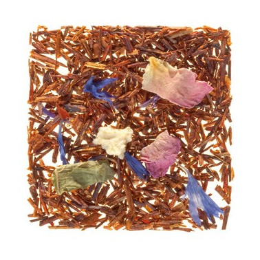 Aromático Rooibos se mezcla aquí con fresa, melocotón y fruta de la pasion. Junto cón pétalos de flores y trocitos de frutas, ofrece un final fragante, fresco y voluptuoso.