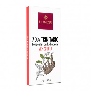 Chocolate negro Domori 70% cacao criollo, origen único Venezuela.