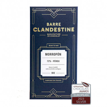 Añadir a la lista de deseos Chocolate MORROPON 72% Perú BARRE CLANDESTINE Precio 8,50 € Bean to Bar Francia Cacao Nativo Piura, Perú. Añadir al carrito
