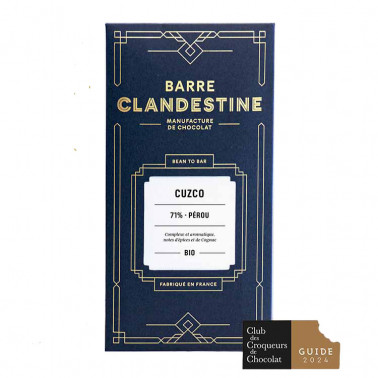 Añadir a la lista de deseos Chocolate CUZCO 71 % Perú BARRE CLANDESTINE Precio 8,50 € Bean to Bar Francia Cacao Chuncho, Perú. Añadir al carrito