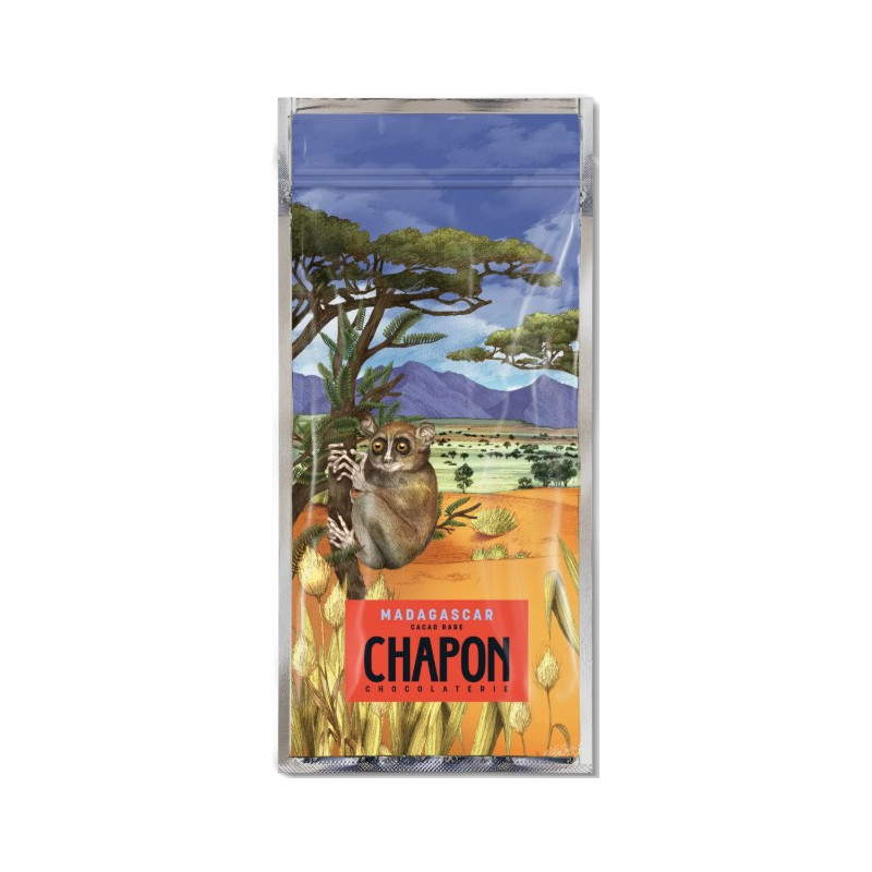 Esta tableta al 75% de cacao Criollo de Madagascar tiene notas florales y afrutadas.