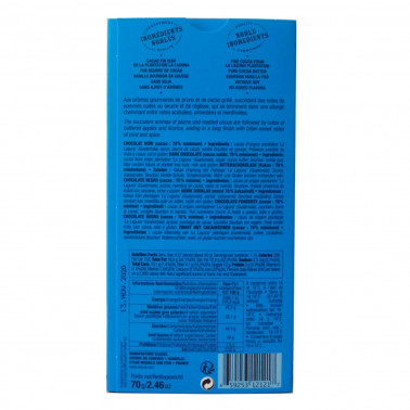 Cocoa (minimum 70%), cane sugar, cocoa butter, Bourbon vanilla bean.