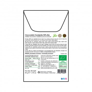 The cocoa from the Esmeraldas region in Ecuador is one of the most famous in the country. They are cocoas called de Arriba or Nacional, scarce, very fine and aromatic to which in this case a small amount of coconut sugar is added to qualify the intensity of 90%.