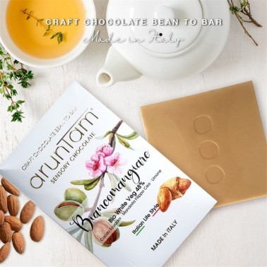 este chocolate blanco vegano con azúcar procedente de coco y de caña de azúcar, es perfecto por su cremosidad gracias a la almendra italiana variedad "Filippo Cea" (molida) y su contenido en manteca de cacao de Ecuador no desodorizada 48%