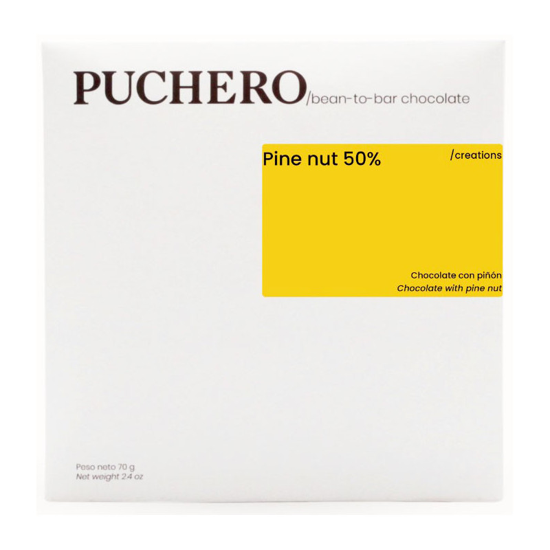 "Tierra de pinares" recolecta un piñon que no se tuesta, aportando al chocolate un sabor único que reconocerás como resina, piñon, frescor.