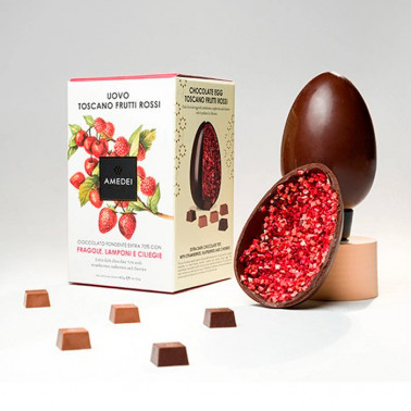 Huevo de Pascual bean to bar elaborado con chocolate Amedei ... diferente del resto. Amedei creó esta receta para aunar los aromas del chocolate Toscano 70% y frutas rojas, fresa y cereza, deshidratadas.