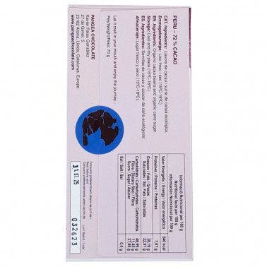 Pangea añade un poco de azúcar de caña y trabaja el cacao con respeto por el sabor original. Sin lecitinas ni manteca de cacao.