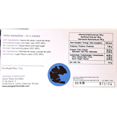 Pangea añade un poco de azúcar de caña y trabaja el cacao con respeto por el sabor original. Sin lecitinas ni manteca de cacao.
