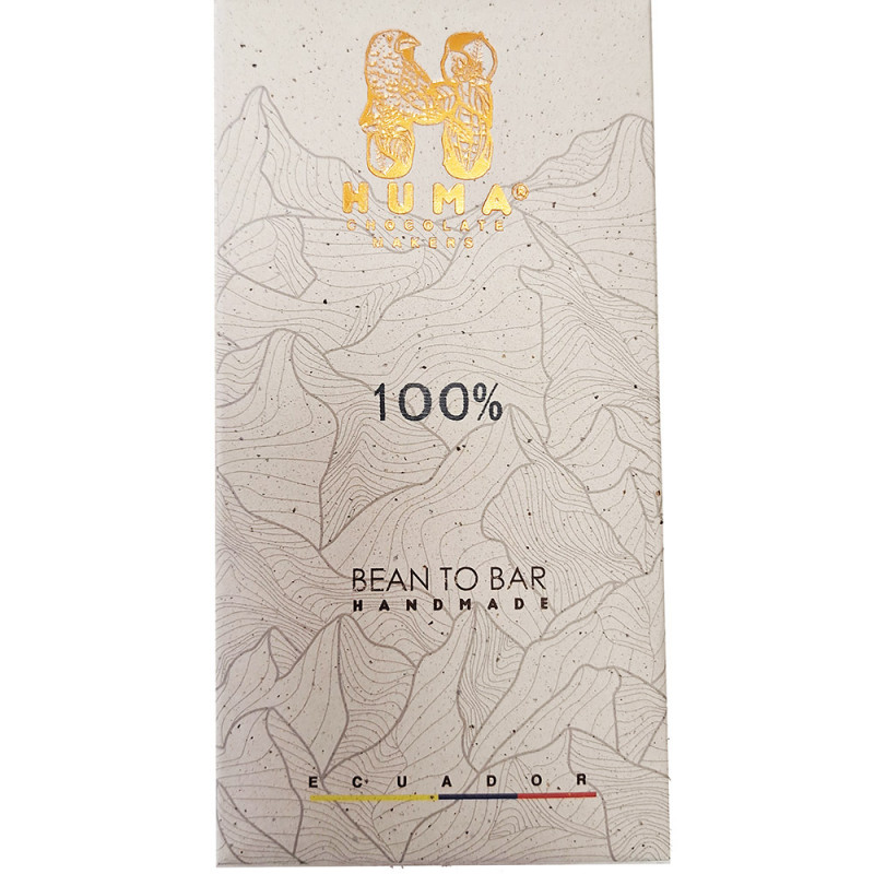 La barra Huma 100% es la expresión más intensa y pura de la marca, diseñada para quienes buscan la potencia del cacao.