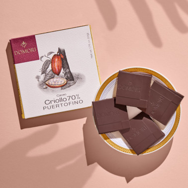 Chocolate Domori negro 70% cacao Criollo origen Venezuela.