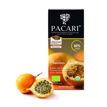 Chunks of passion fruit together with the cocoa from Arriba, create a chocolate bar that provides the flavor of cocoa and the sweetness of this slightly acidic fruit.