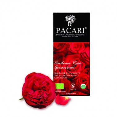 Fragrant rose petals from the foothills of the Andes together with cocoa from Arriba, create a chocolate bar that provides the flavor of cocoa and the elegance of the rose aroma.
