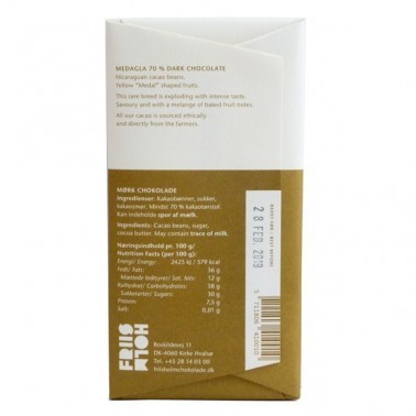 MEDAGLA 70% es un chocolate procedente de una variedad de cacao "dorado" de Nicaragua.