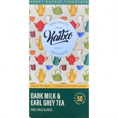 El chocolate Kaitxo Peru Palo Blanco, en combinacion con el Te Early Grey ofrece la fusion del cacao de Palo Alto con toques florales y afrutados y el te Earl Grey donde es protagonista la Bergamota.
