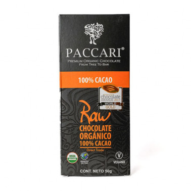 Um chocolate cru, especial pela sua elaboração e pelo seu teor de cacau. Adequado para quem deseja um sabor puro de cacau sem outros aditivos.
