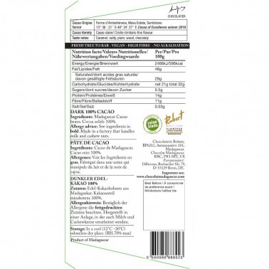 Elaborado en la capital de Madagascar, de plantaciones al norte de la isla, en el valle del rio Sambirano, se produce esta tableta de la Plantación Mava, una de las mas apreciadas en la isla.