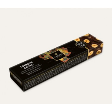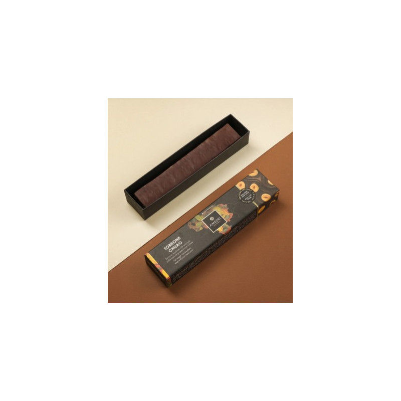 Turrón 75% (miel, azúcar, pasta de cacao Chuao Amedei 19%, huevo, fécula de patata, aceite de oliva, Vainilla de Madagascar)
