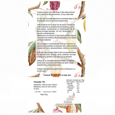 Contamos por tanto con un excelente cacao acriollado que nos ha permitido hacer 3 chocolates de menor a mayor intensidad. En este caso un 80% donde se potencia la nota de cacao y baja ligerametne la fruta roja, fresa, manteniendo los toques finales de melaza