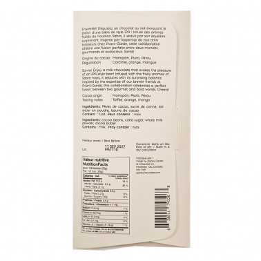 Con ellos se trabaja un chocolate con "aromas a jazmín, azahar y su ligero toque a limoncillo te harán ver y sentir el intenso atardecer del Bagua en Perú, rojo, rosa, naranja, antes de dejar todo el ambiente a un dulce final acaramelado que te acariciar delicadamente tu alma".