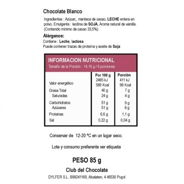 En este caso, se trata de chocolate blanco en tableta de 85 gramos que gusta a mayores y pequeños.