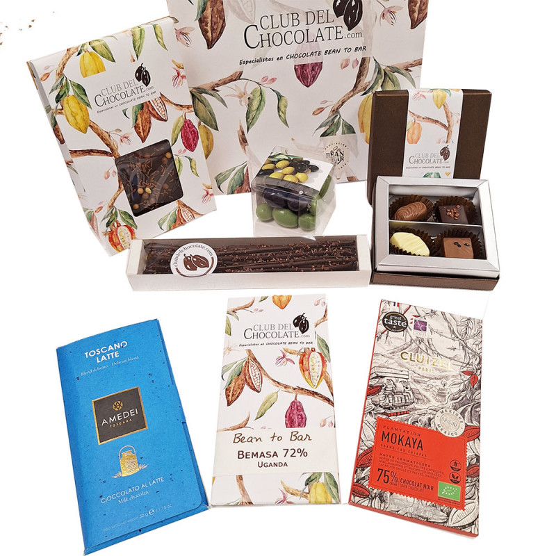 Hemos elegido chocolates de diferentes porcentajes de cacao, siempre de gran calidad, y en distintos formatos y sabores para dar gusto a todos los públicos. Bombones, dulces y chocolates únicos.