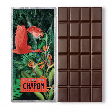 Este 100% está elaborado con el famoso cacao venezolano de Rio Caribe, donde crecen criollos de gran categoría. Recolectado en primaverade 2015